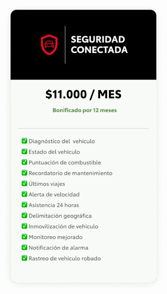 (*)Servicios Conectados refiere a los servicios de movilidad que, mediante la integración de tecnologías digitales, proporciona una variedad de características y funcionalidades que permitan al propietario tener más seguridad y comodidad en su vehículo. Podrá obtener toda información, planes vigentes, condiciones o limitaciones que puedan aplicarse a los servicios, así como una lista completa de sus características en el presente sitio. A todo evento, resultan de aplicación los Términos y Condiciones del servicio.